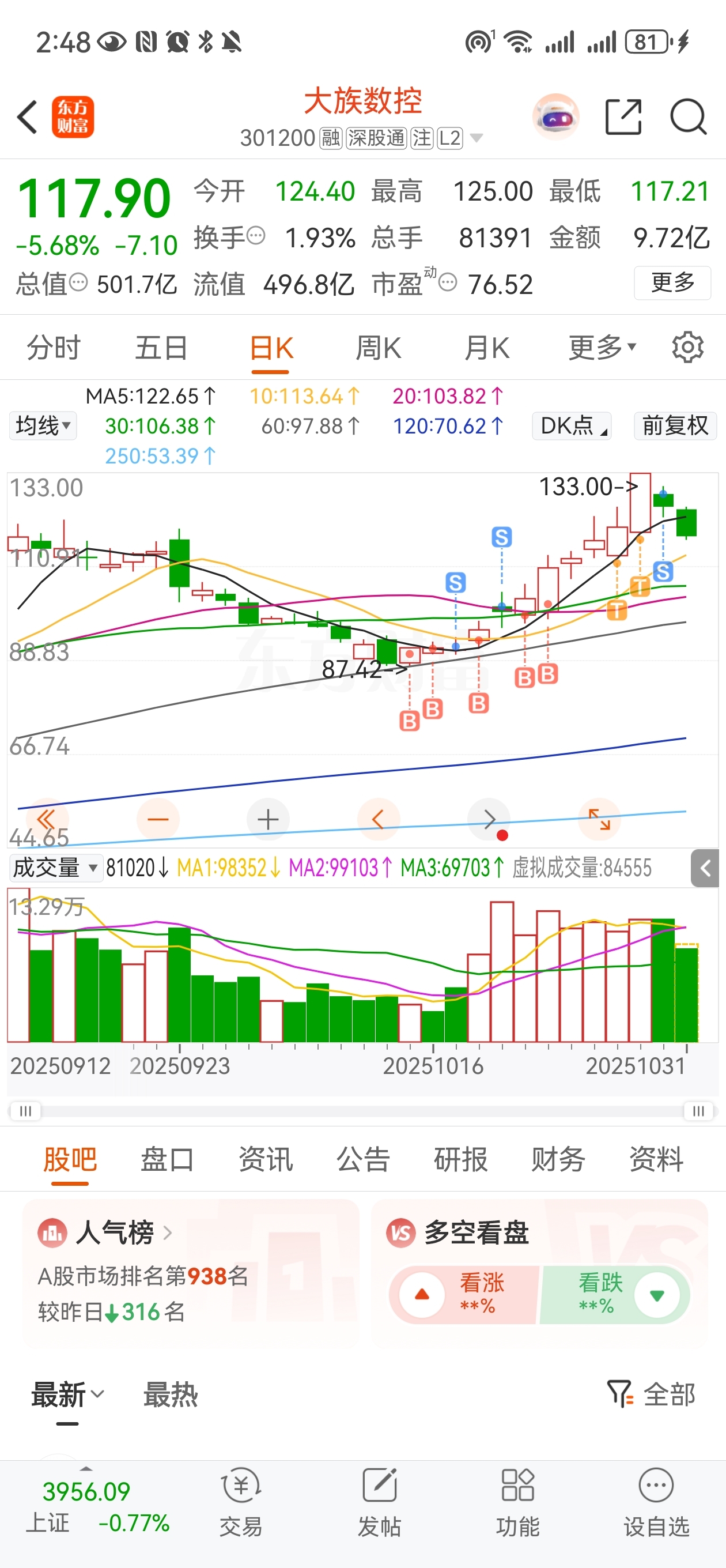 $大族数控(SZ301200)$ 粥三卖半仓,昨天竞价全出,但昨天买别的也亏,感谢大族!短期再见,老黄害人,喝多了,3500说成5000