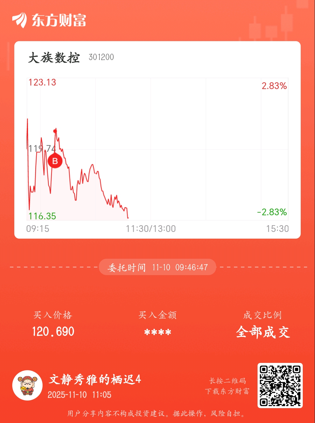 温馨提示: 1.根据《证券法》规定,禁止编造、传播虚假信息或者误导性信息,扰乱证券市场;2.用户在本社区发表的所有资料、言论等仅代表个人观点,与本网站立场无关,不对您构成任何投资建议。用户应基于自己的独立判断,自行决定证券投资并承担相应风险。《东方财富社区管理规定》