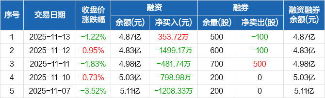 大族数控:融资净买入353.72万元,融资余额4.87亿元(11-13)