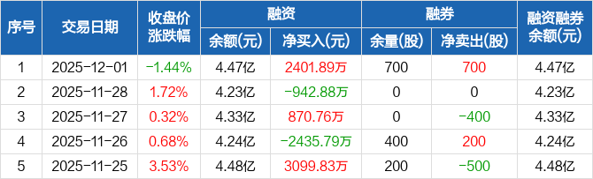 大族数控:融资净买入2401.89万元,融资余额4.47亿元(12-01)