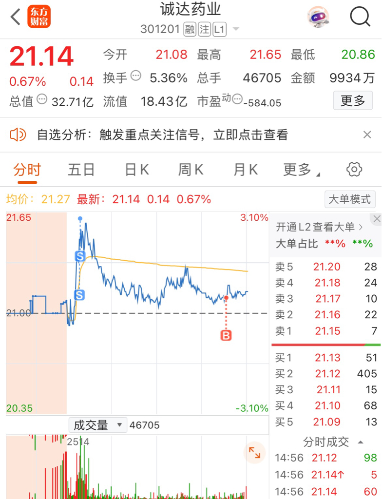 $诚达药业(SZ301201)$