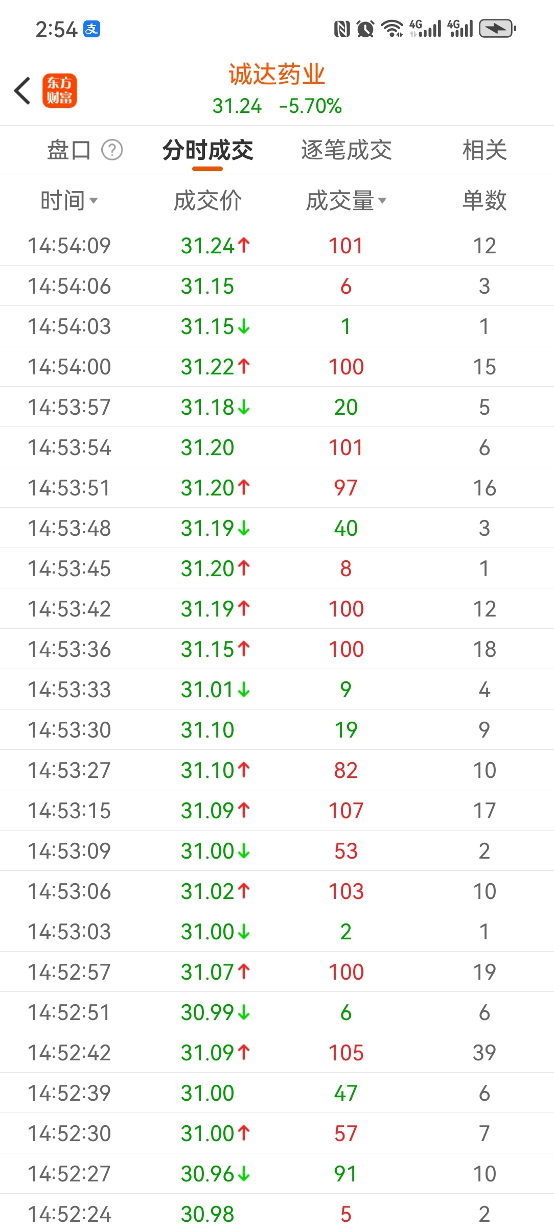 $诚达药业(SZ301201)$ 这全是100手一百手的买,什么情况