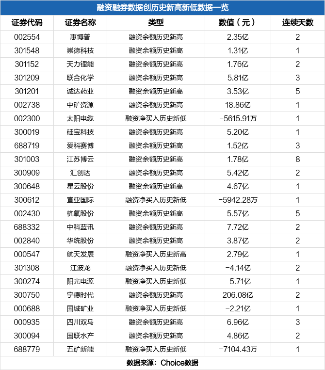 11月18日沪深两市共有106只股票两融数据创历史新高/新低,部分数据如下: