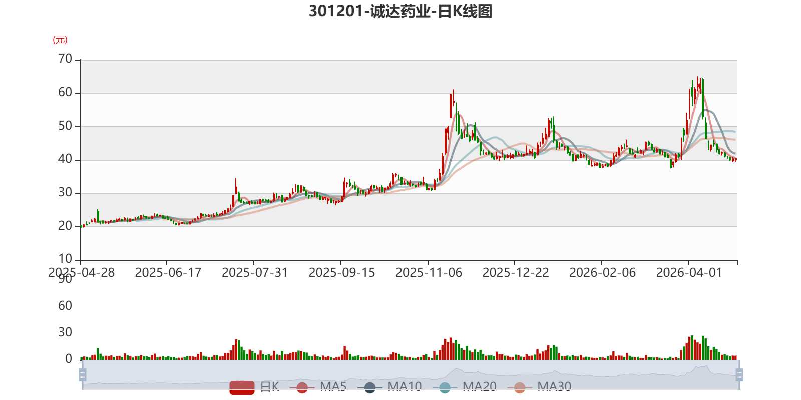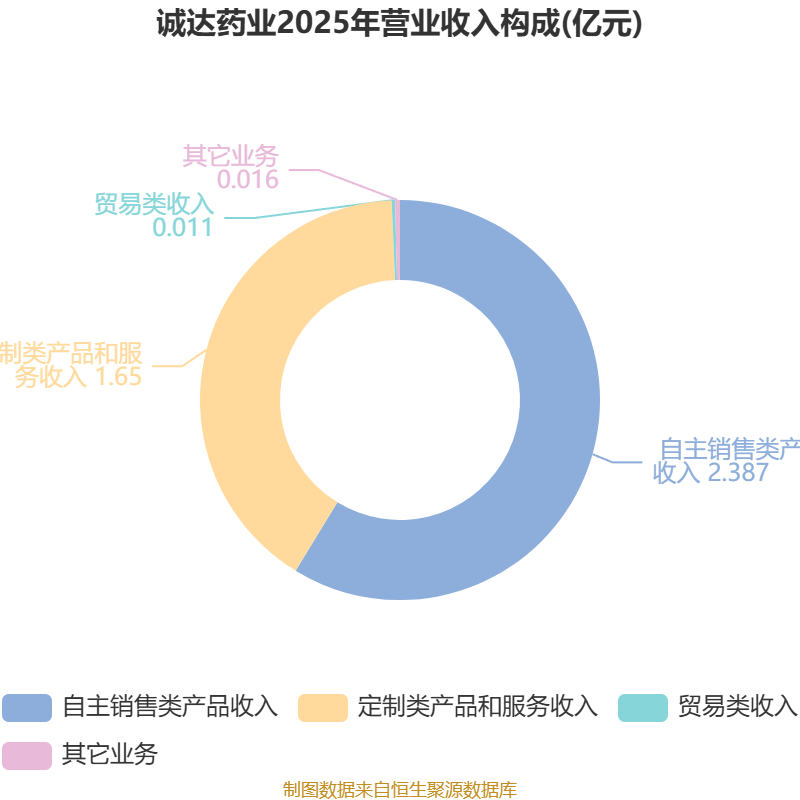 中证智能财讯诚达药业(301201)4月28日披露2025年年度报告。2025年,公司实现营业总收入4.06亿元,同比增长21.99%;归母净利润亏损1192.58万元,上年同期亏损2810.37万元;扣非净利润亏损2669.29万元,上年同期亏损5767.18万元;经营活动产生的现金流量净额为3401.77万元,同比增长18.74%;报告期内,诚达药业基本每股收益为-0.0787元,加权平均净资产收益率为-0.56%。公司2025年度分配预案为:拟向全体股东每10股派现2元(含税)。