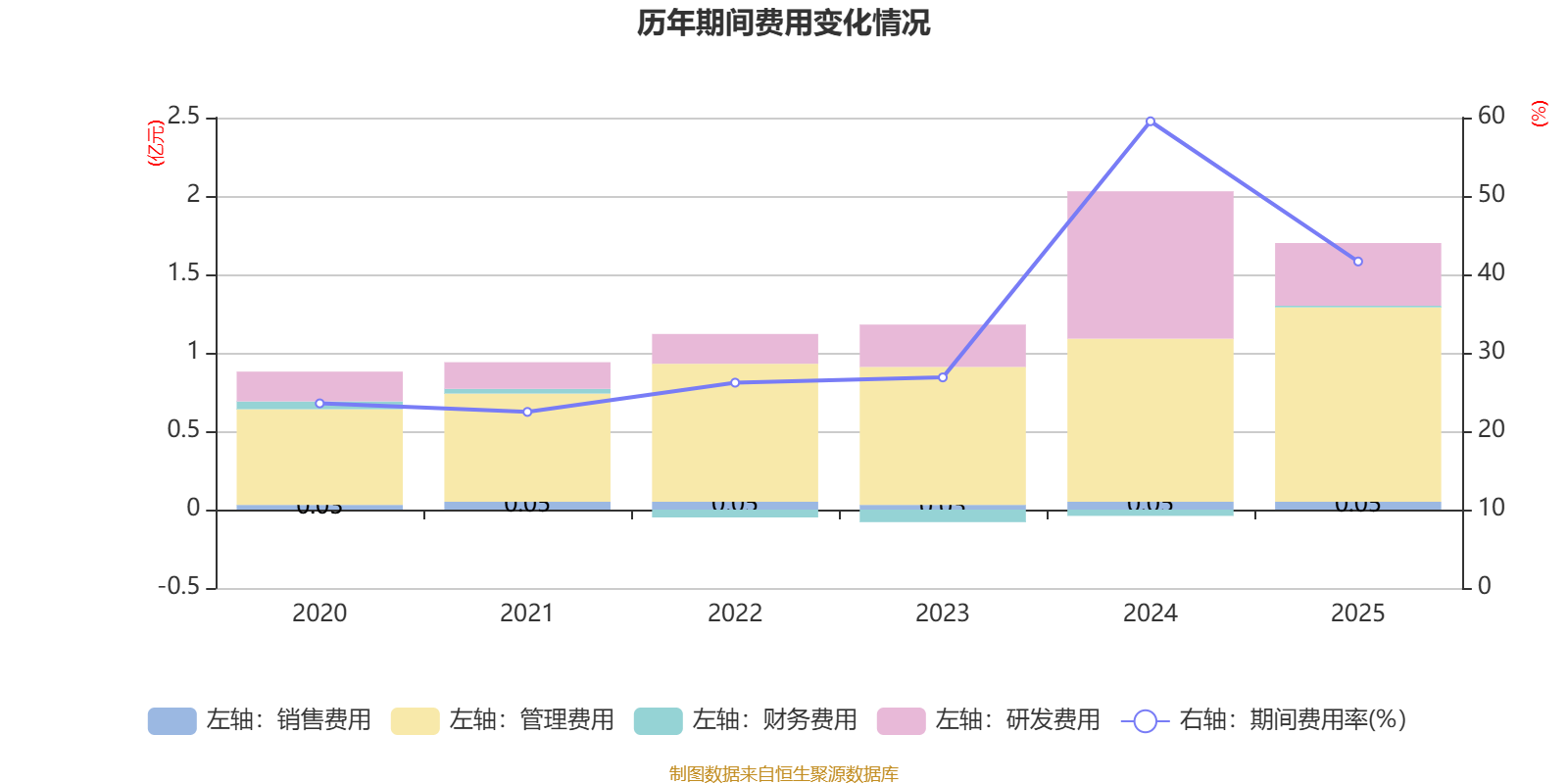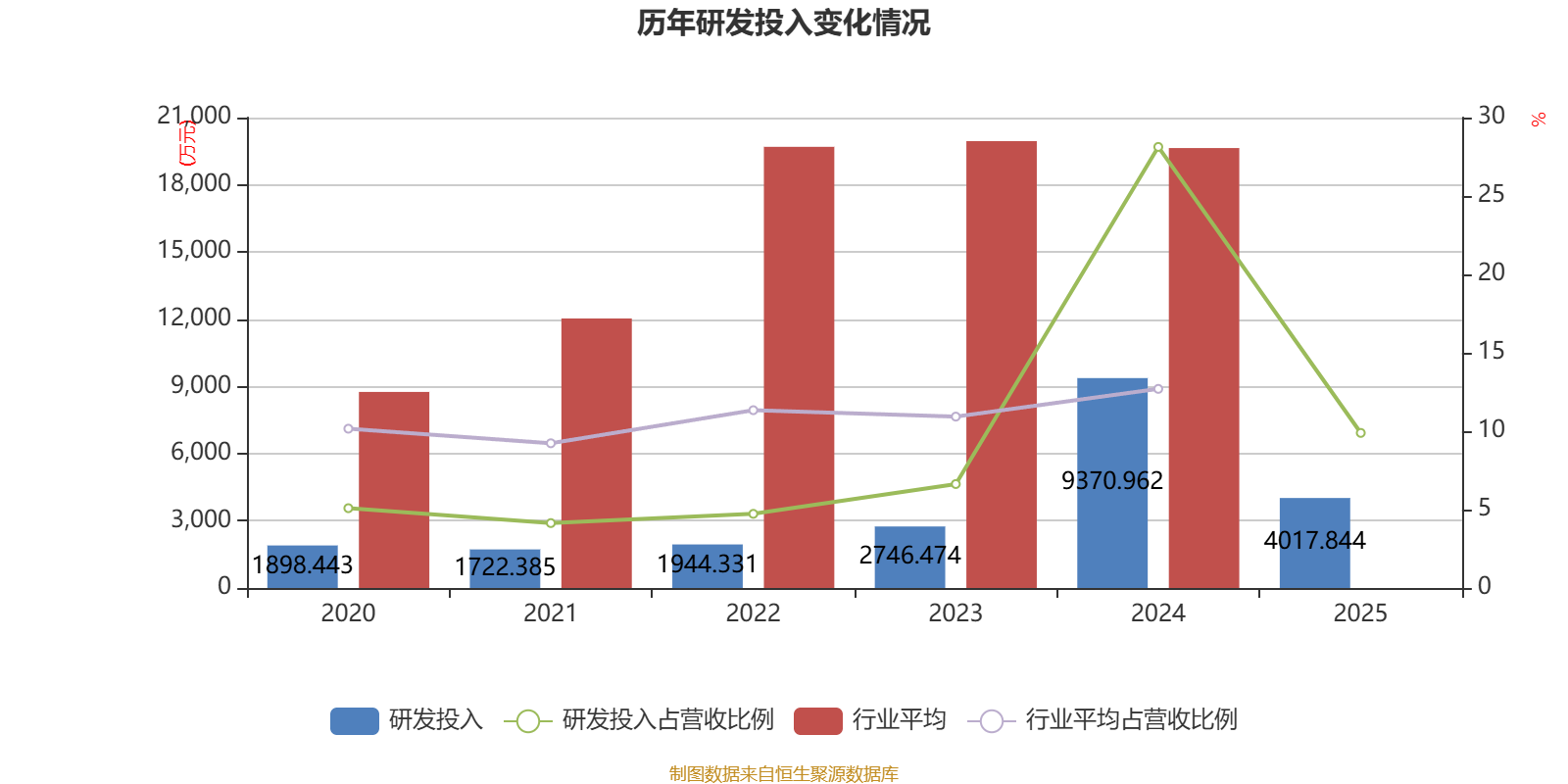 2025年全年,公司研发投入金额为4017.84万元,同比下降57.12%;研发投入占营业收入比例为9.89%,相比上年同期下降18.24个百分点。此外,公司全年研发投入资本化率为0%。