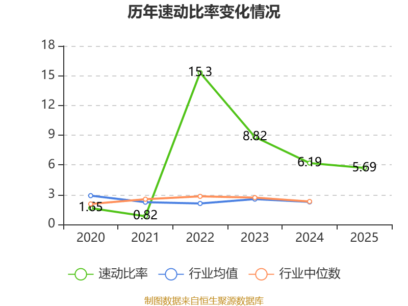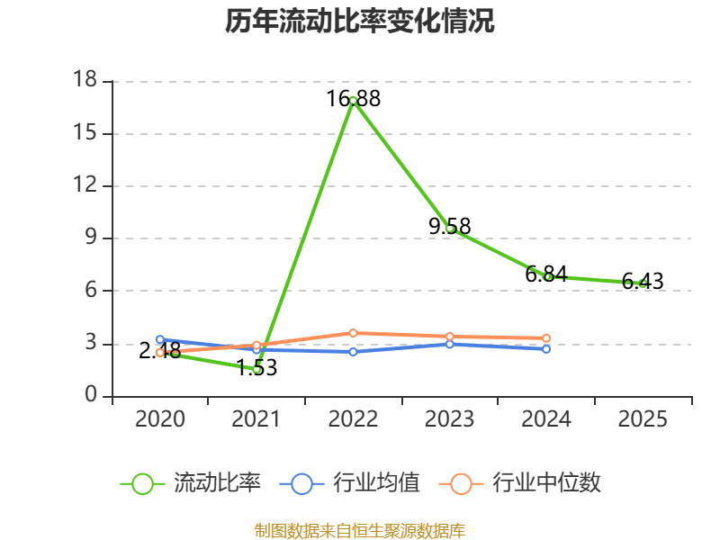 2025年,公司流动比率为6.43,速动比率为5.69。