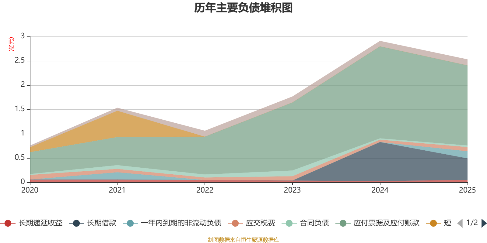 负债重大变化方面,截至2025年末,公司长期借款较上年末减少44.7%,占公司总资产比重下降1.4个百分点;应付票据及应付账款较上年末减少13%,占公司总资产比重下降0.76个百分点;一年内到期的非流动负债较上年末增加23669.93%,占公司总资产比重上升0.63个百分点;应交税费较上年末增加78.6%,占公司总资产比重上升0.17个百分点。