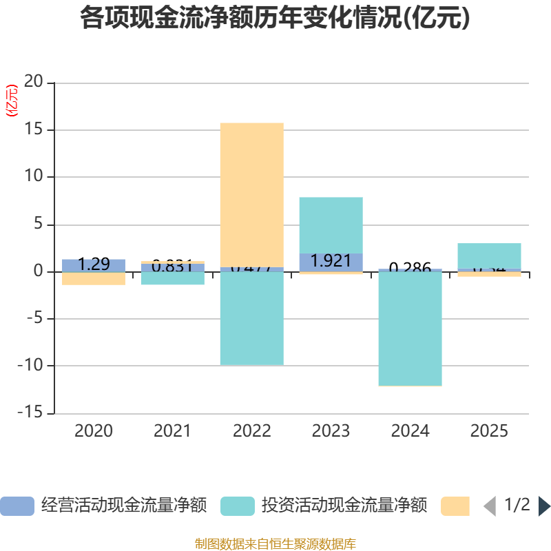 截至2025年,公司经营活动现金流净额为3401.77万元,同比增长18.74%;筹资活动现金流净额-5386.97万元,同比减少4674.65万元;投资活动现金流净额2.66亿元,上年同期为-12.09亿元。