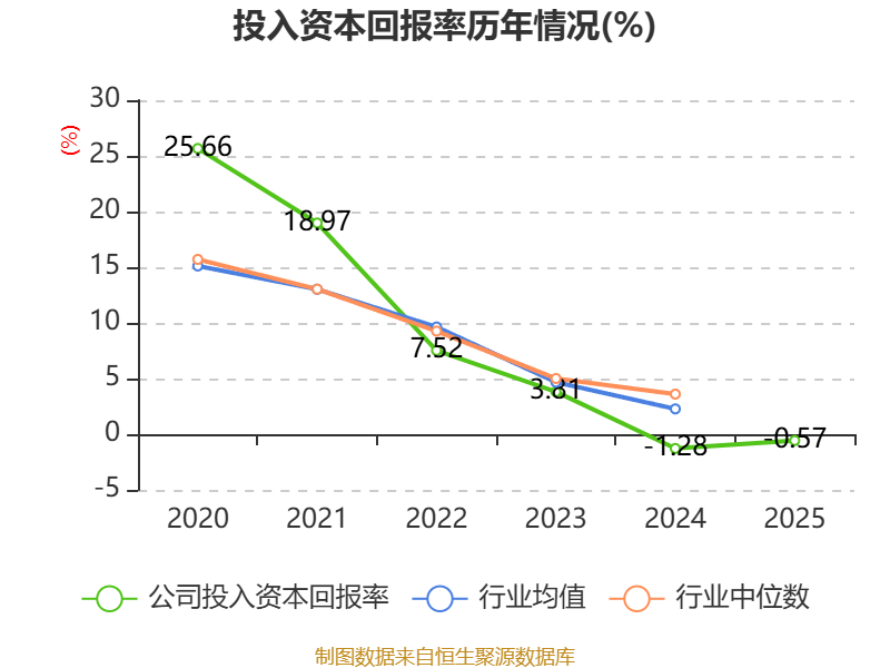 数据显示,2025年公司加权平均净资产收益率为-0.56%,较上年同期上升0.73个百分点。公司2025年投入资本回报率为-0.57%,较上年同期上升0.71个百分点。