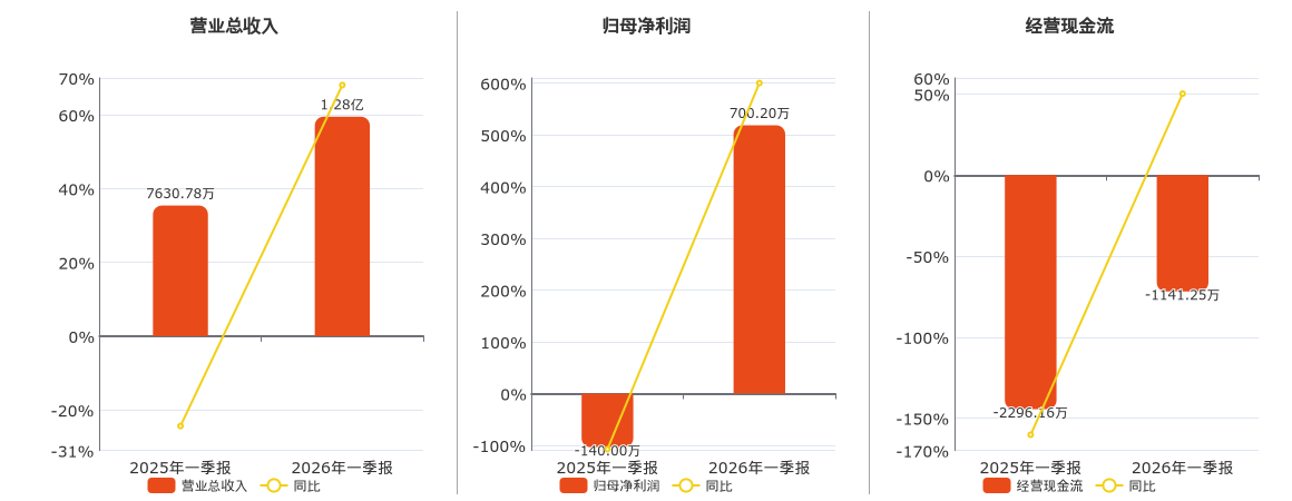 公司营业总收入为1.28亿元,在已披露的同业公司中排名第27。归母净利润为700.20万元,在已披露的同业公司中排名第23。经营活动现金净流入为-1141.25万元,在已披露的同业公司中排名第23。