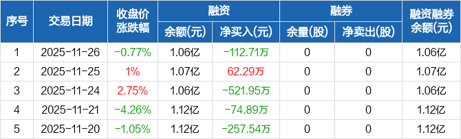 朗威股份:融资净偿还112.71万元,融资余额1.06亿元(11-26)