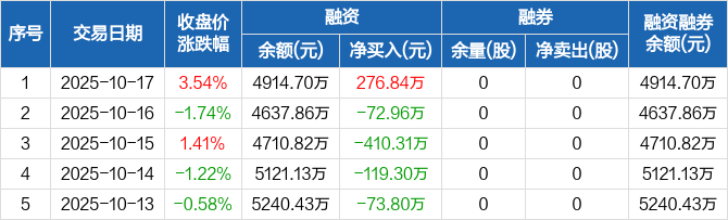 国泰环保:融资净买入276.84万元,融资余额4914.7万元(10-17)