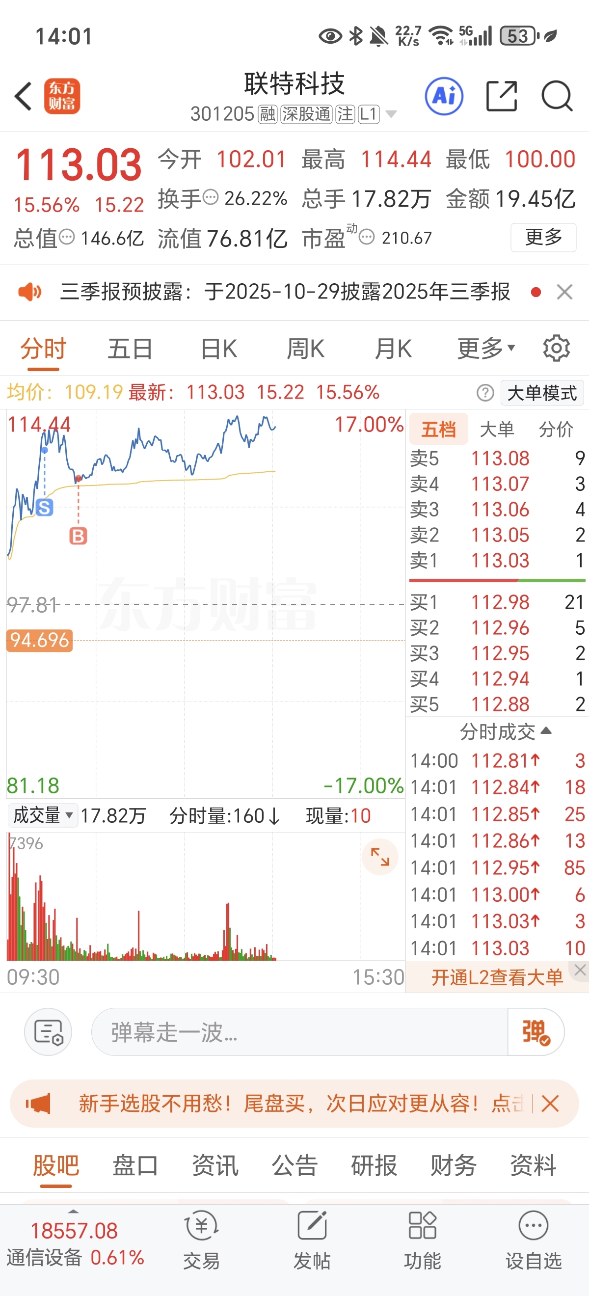 $联特科技(SZ301205)$ 最多只差3个点了,你确定不冲下涨停吗????