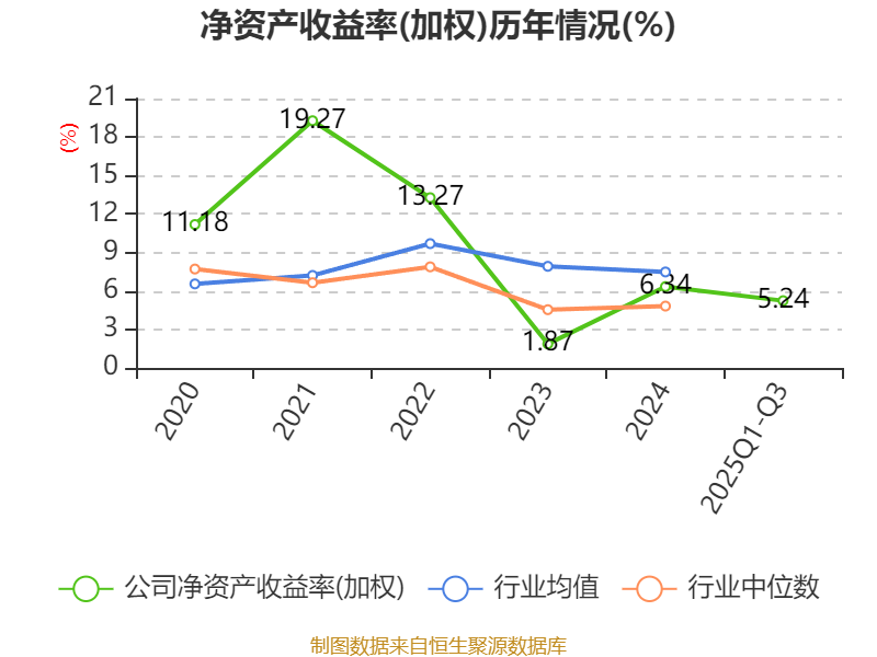 盈利能力方面, 2025年前三季度公司加权平均净资产收益率为5.24%,同比上升0.95个百分点。公司2025年前三季度投入资本回报率为4.17%,较上年同期上升0.46个百分点。