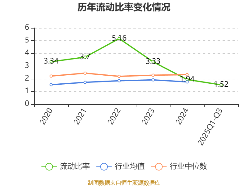 2025年前三季度,公司流动比率为1.52,速动比率为0.72。