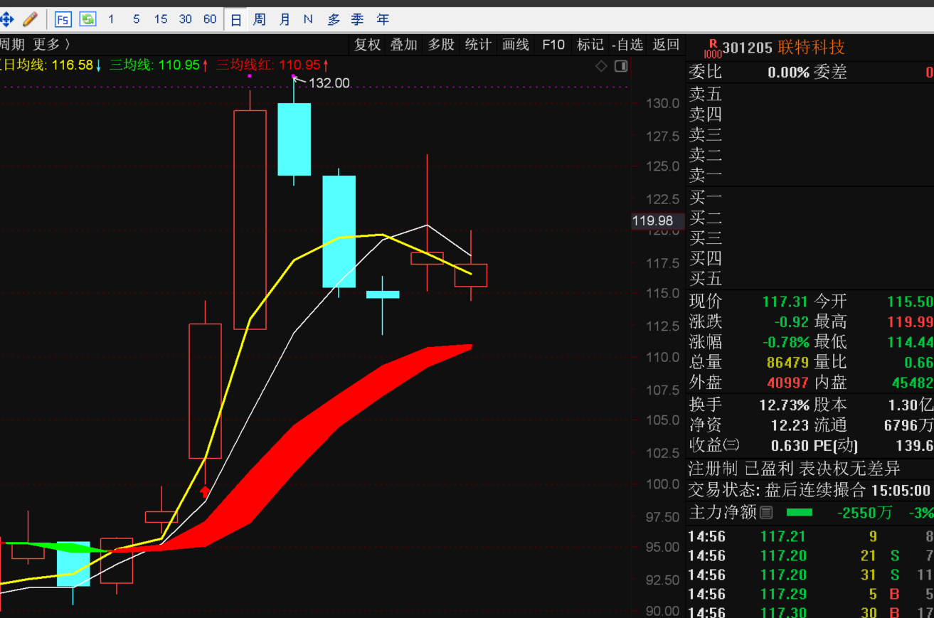 依然在持股阶段,明天应该能收在118上方,明日目标124,如果下跌就要考验97到112的位置了,总之继续看好联特本月行情