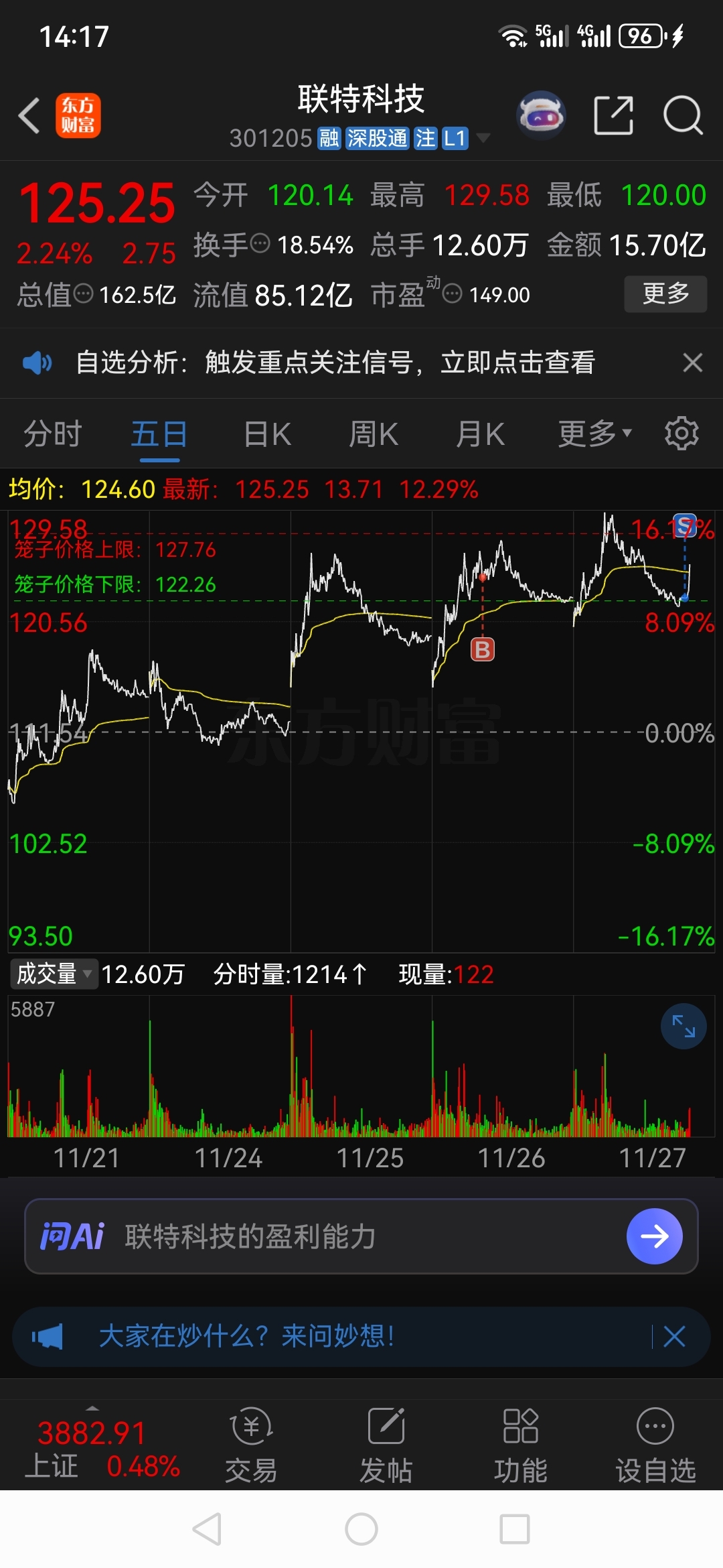 $联特科技(SZ301205)$ 才卖不到三分钟,就拉两个多点!