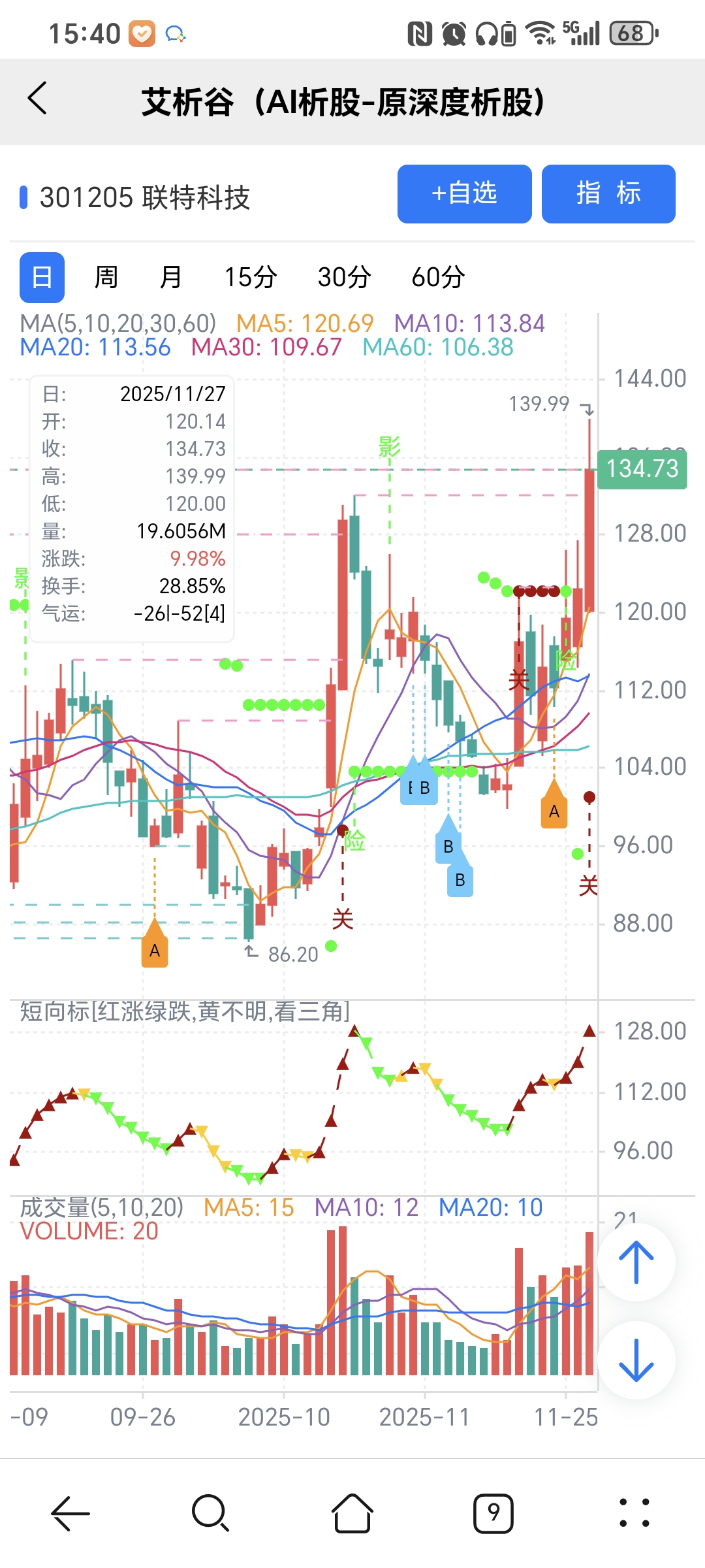 图中A、B 关注标记是对应AI选股模型当天下午2点多给出。