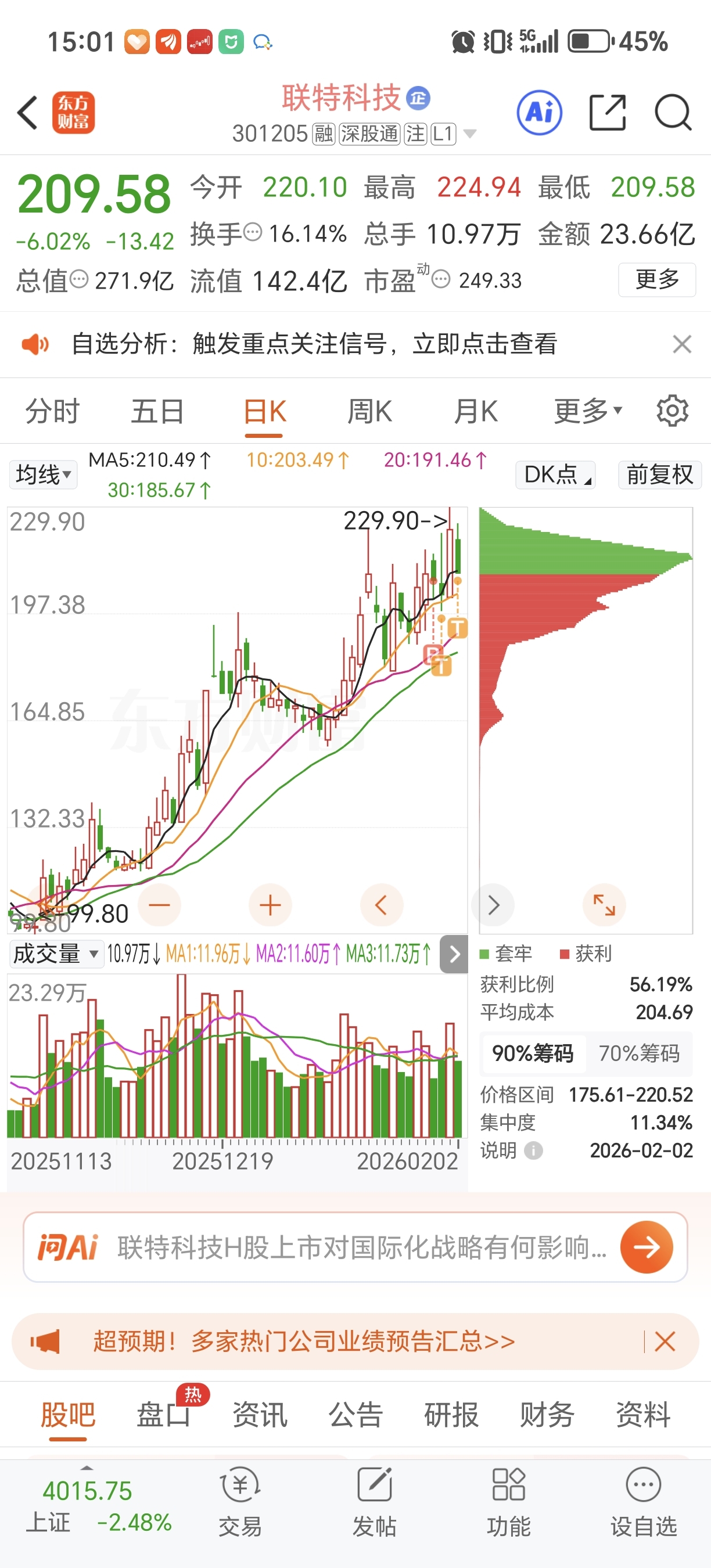 $联特科技(SZ301205)$ 上个交易日分歧不大,今天缩量在5日线,趋势还没走完!