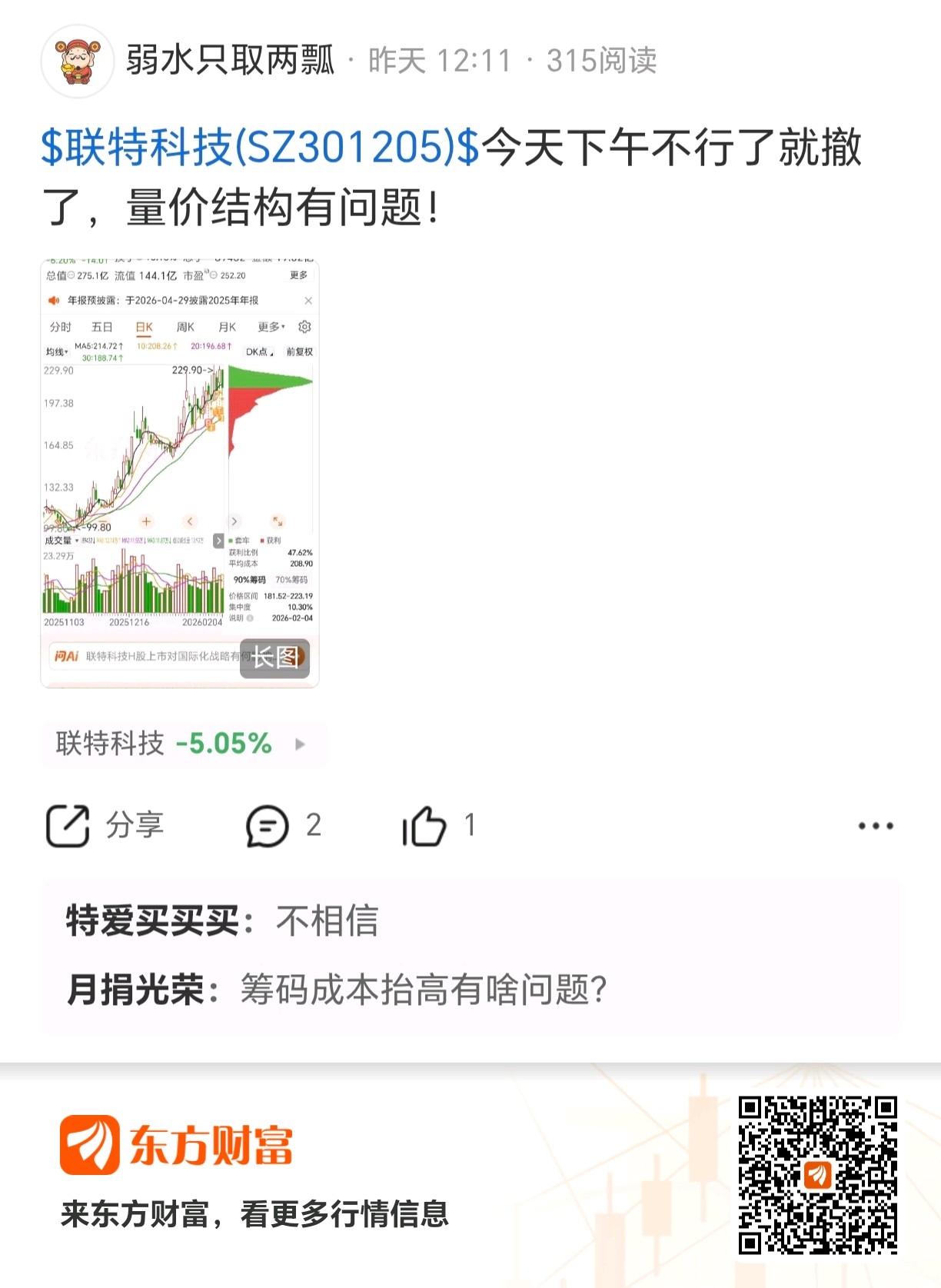 $联特科技(SZ301205)$ 啥叫盘感!
