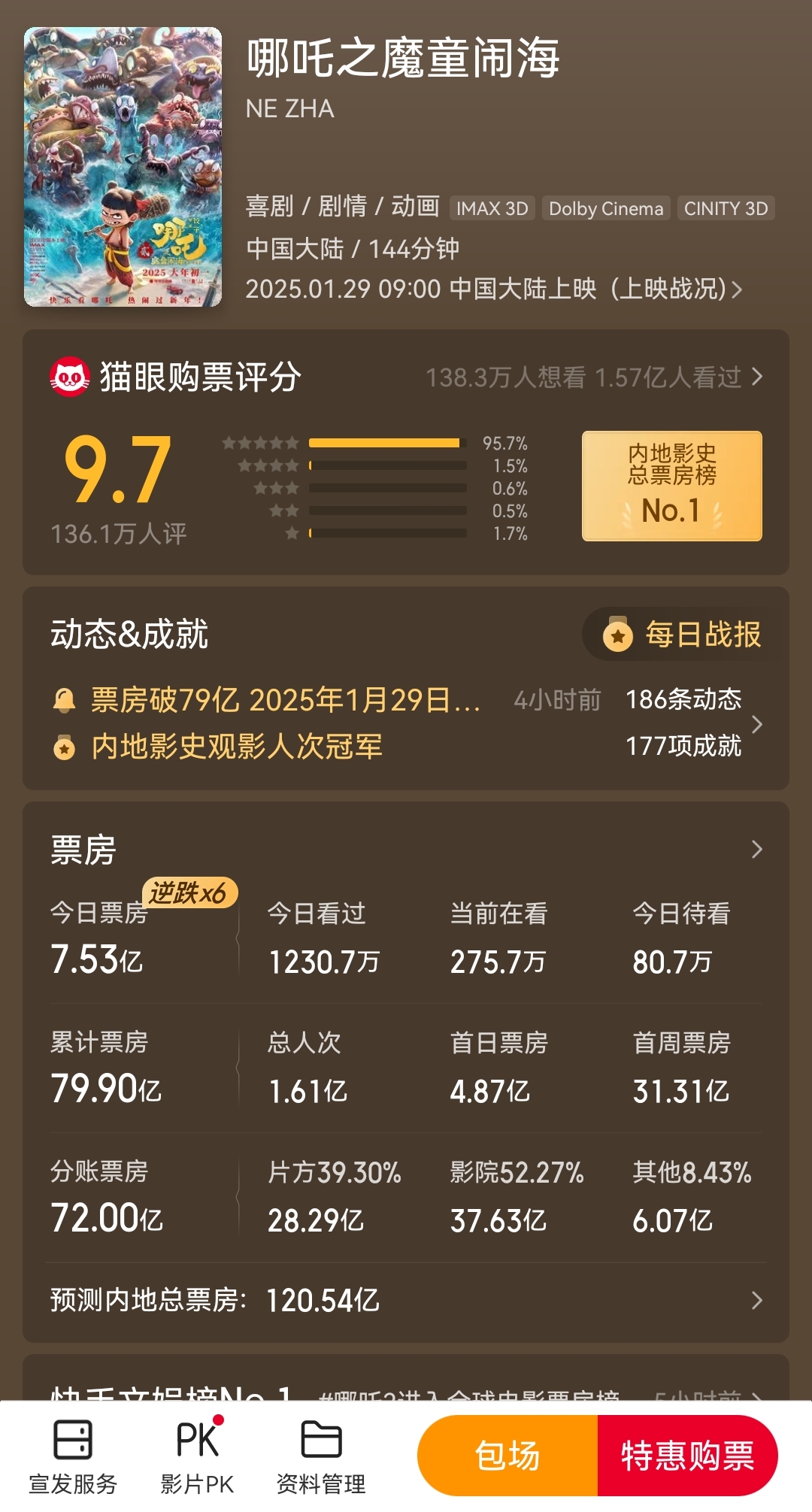 我就是吉林浴帽天天骂的上海IP。继续加仓哪吒2出品方光线传媒,目前预测国内票房1