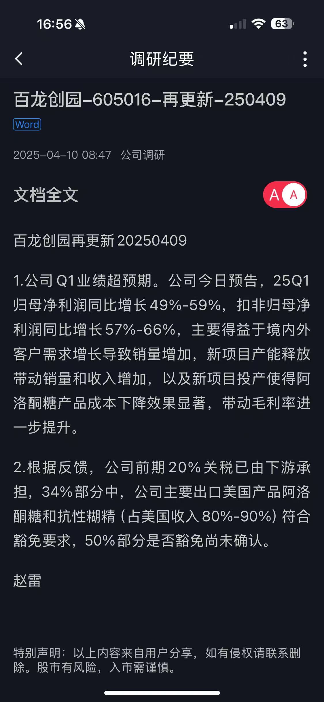 根据百龙创园20250409更新,根据反馈,公司前期20%关税已由下游承担,34%部分中,公司主要出口美国产品阿洛酮糖和抗性糊精(占美国收入80%-90%)符合豁免要求,50%部分是否豁免尚未确认。如图: