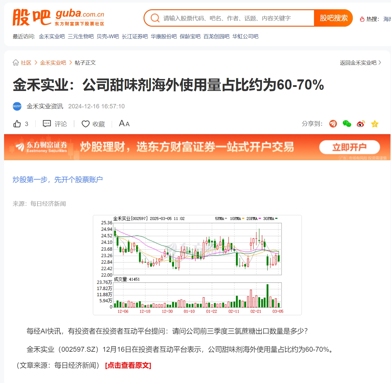 投资者提问:董秘你好,公司22年曾回复侧面了解的消息,嘉吉停产赤藓糖醇从国内采购,公司有没有侧面了解过嘉吉赤藓糖醇美国工厂什么时候复产的