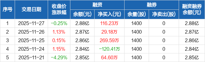 三元生物:连续3日融资净买入累计415万元(11-27)