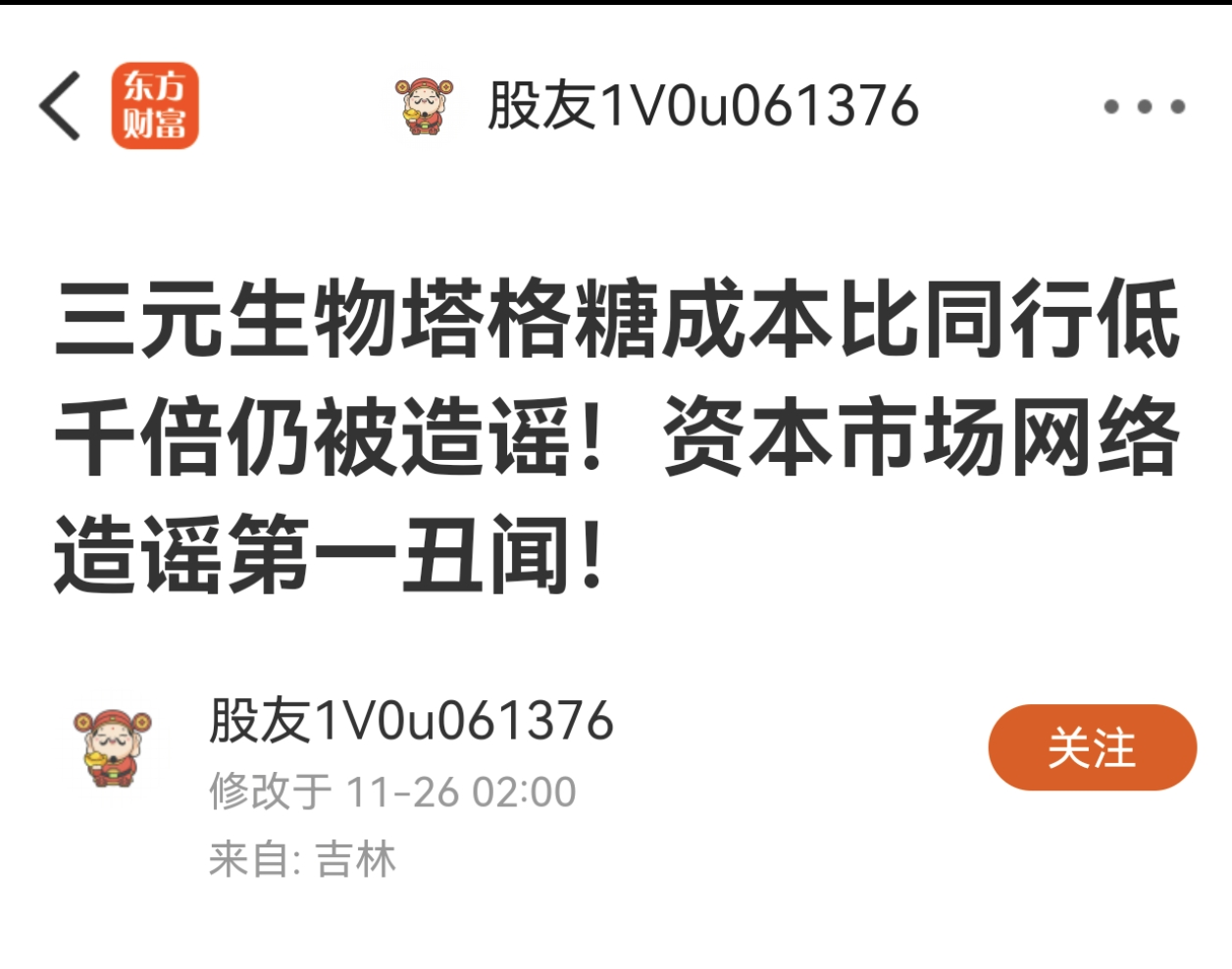 $三元生物(SZ301206)$ 这个长期来我们股吧诋毁我们股票的吉林股托,刷屏忽悠人抛股票去接盘有退市风险的三元生物帮大股东二股东出货,大家注意辨认并举报。$百龙创园(SH605016)$ $保龄宝(SZ002286)$