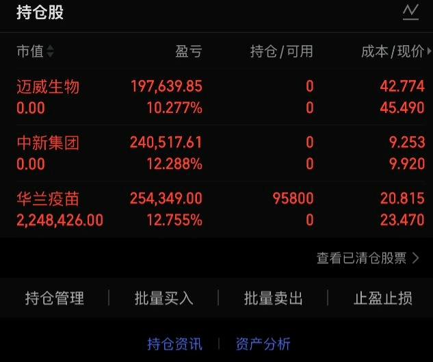 看透困境本质、坚守核心价值”的必然。能在喧嚣中保持清醒,在困境中识别明珠,便掌握了逆向投资的真正智慧。#收盘点评# #炒股日记# #复盘记录# #强势机会# #股市怎么看# $华兰疫苗(SZ301207)$ $迈威生物-U(SH688062)$ $中新集团(SH601512)$