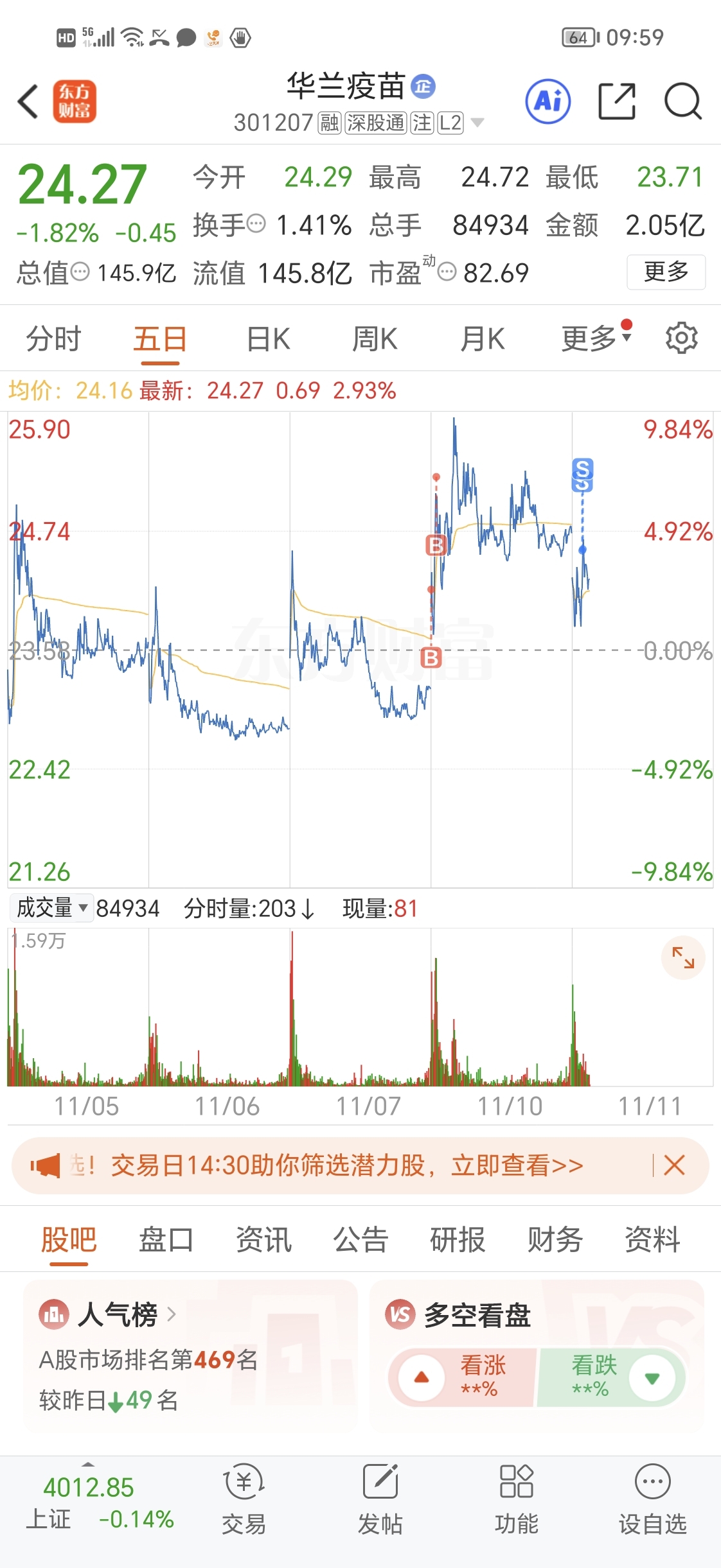 $华兰疫苗(SZ301207)$ 昨天要不是浮盈加仓,这个华兰也能挣俩点出来。有点贪心了昨天9个点加仓,不然流感这次虽然跌了还是能盈利出来。如果说买错了板块跌都能不亏。那就是很好的操作了。