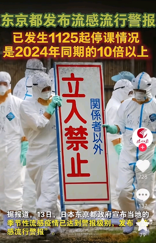 近期日本流感疫情持续扩散,单周病例数突破8万例,超8000所学校停课,部分地区已达“警报”级别。