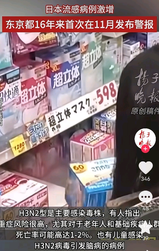 截至11月9日,全国8473所保育园、幼儿园、中小学采取全校或部分班级停课措施,数量较前一周增至近3倍。 医疗资源紧张:东京涩谷等地区诊所患者量一周内增加20%-30%,部分药店出现流感药物需求上升。