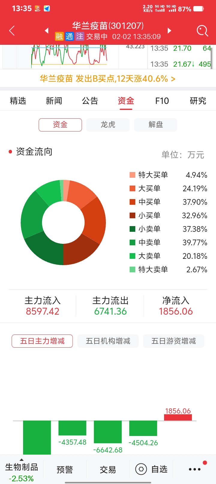 $华兰疫苗(SZ301207)$  今天机构和主力和游资都是边砸盘边疯狂买入了啊!!抄底了啊!