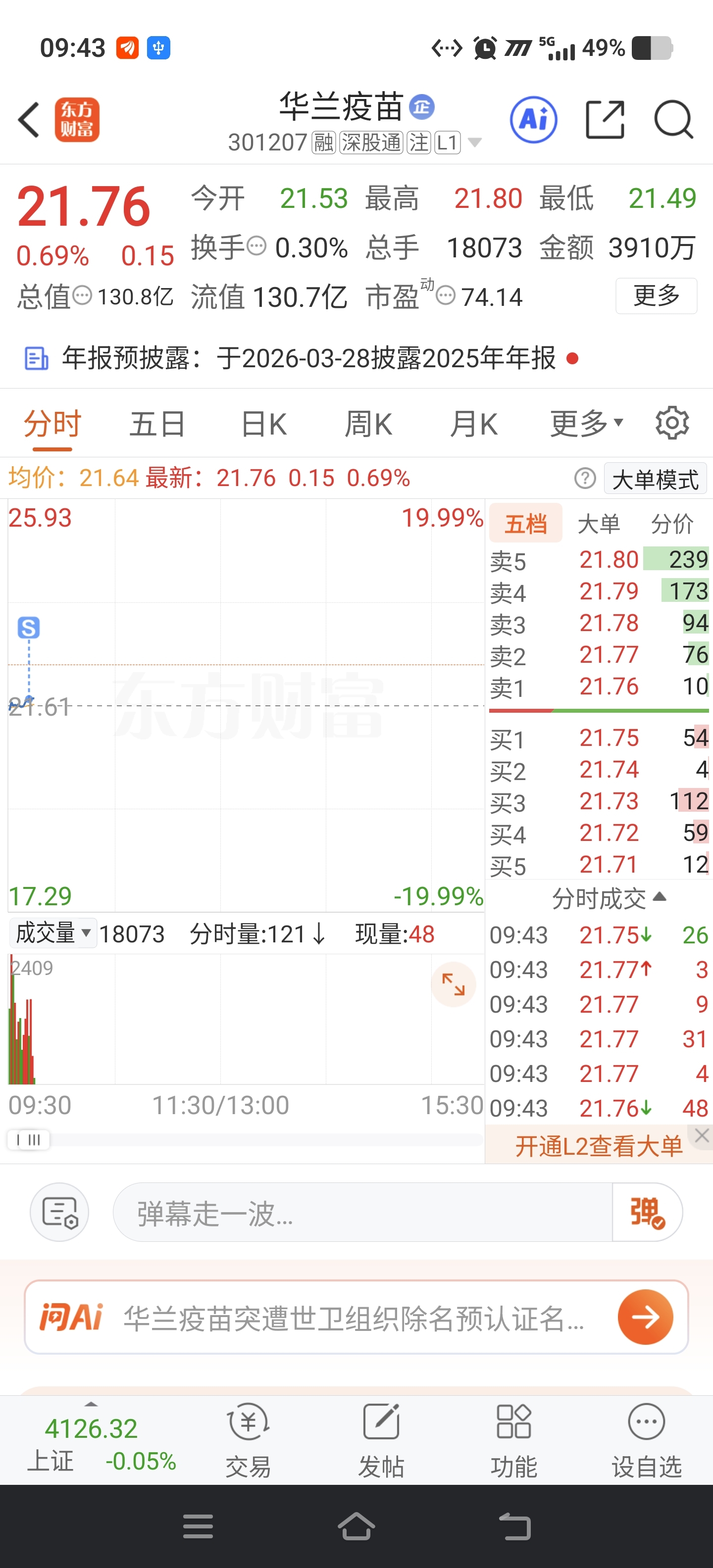 $华兰疫苗(SZ301207)$ 又不行了,出一部分看看。