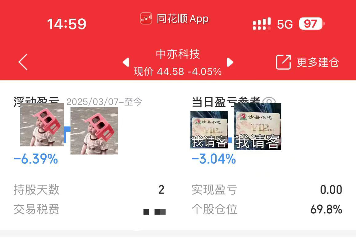 $中亦科技(SZ301208)$ 加仓中亦,今天ai调整,中亦也随板块调整,这个股算了涨幅不大的优质小盘股,今天加仓到7成,明天看板块表现择机加仓或者10日线附近加仓到满仓,耐心持股