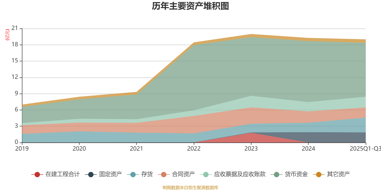 资产重大变化方面,截至2025年三季度末,公司货币资金较上年末减少11.64%,占公司总资产比重下降6.08个百分点;存货较上年末增加54.99%,占公司总资产比重上升5.2个百分点;应收票据及应收账款较上年末增加15.55%,占公司总资产比重上升1.52个百分点;合同资产较上年末减少9.39%,占公司总资产比重下降0.88个百分点。