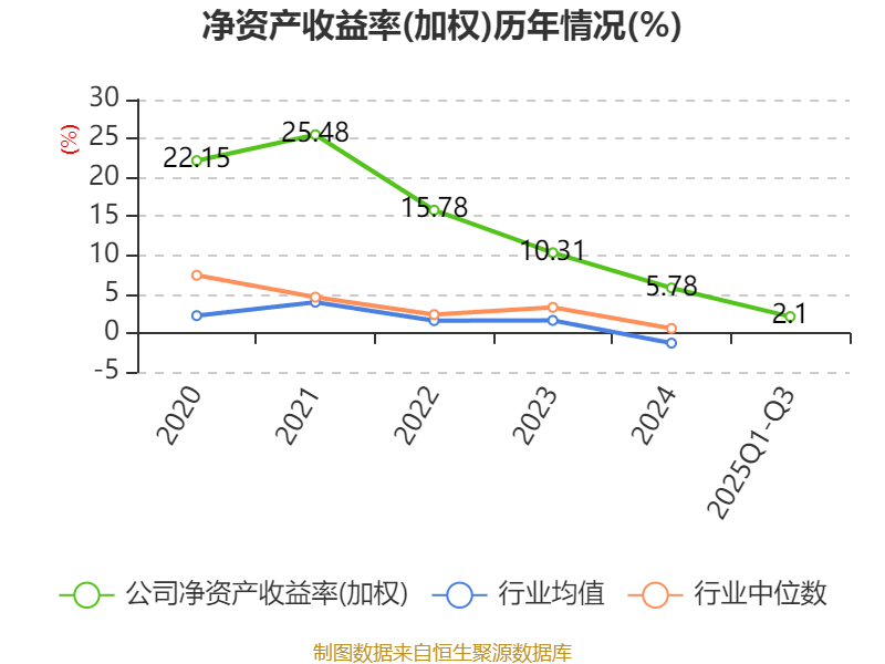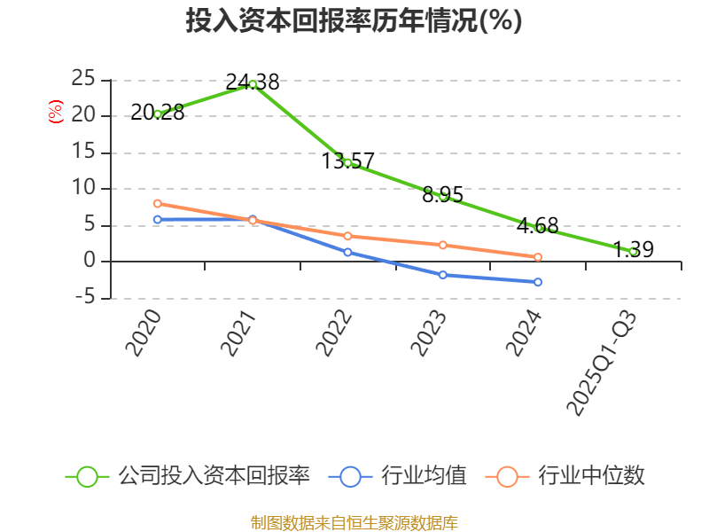 盈利能力方面, 2025年前三季度公司加权平均净资产收益率为2.1%,同比下降1.53个百分点。公司2025年前三季度投入资本回报率为1.39%,较上年同期下降1.39个百分点。