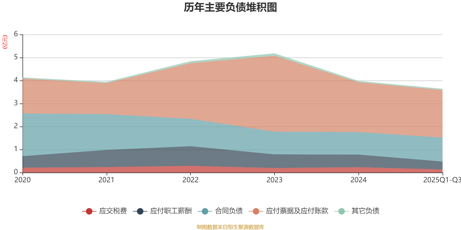 负债重大变化方面,截至2025年三季度末,公司应付职工薪酬较上年末减少37.38%,占公司总资产比重下降1.04个百分点;应交税费较上年末减少42.95%,占公司总资产比重下降0.5个百分点;合同负债较上年末增加6.67%,占公司总资产比重上升0.41个百分点;应付票据及应付账款较上年末减少4.66%,占公司总资产比重下降0.38个百分点。