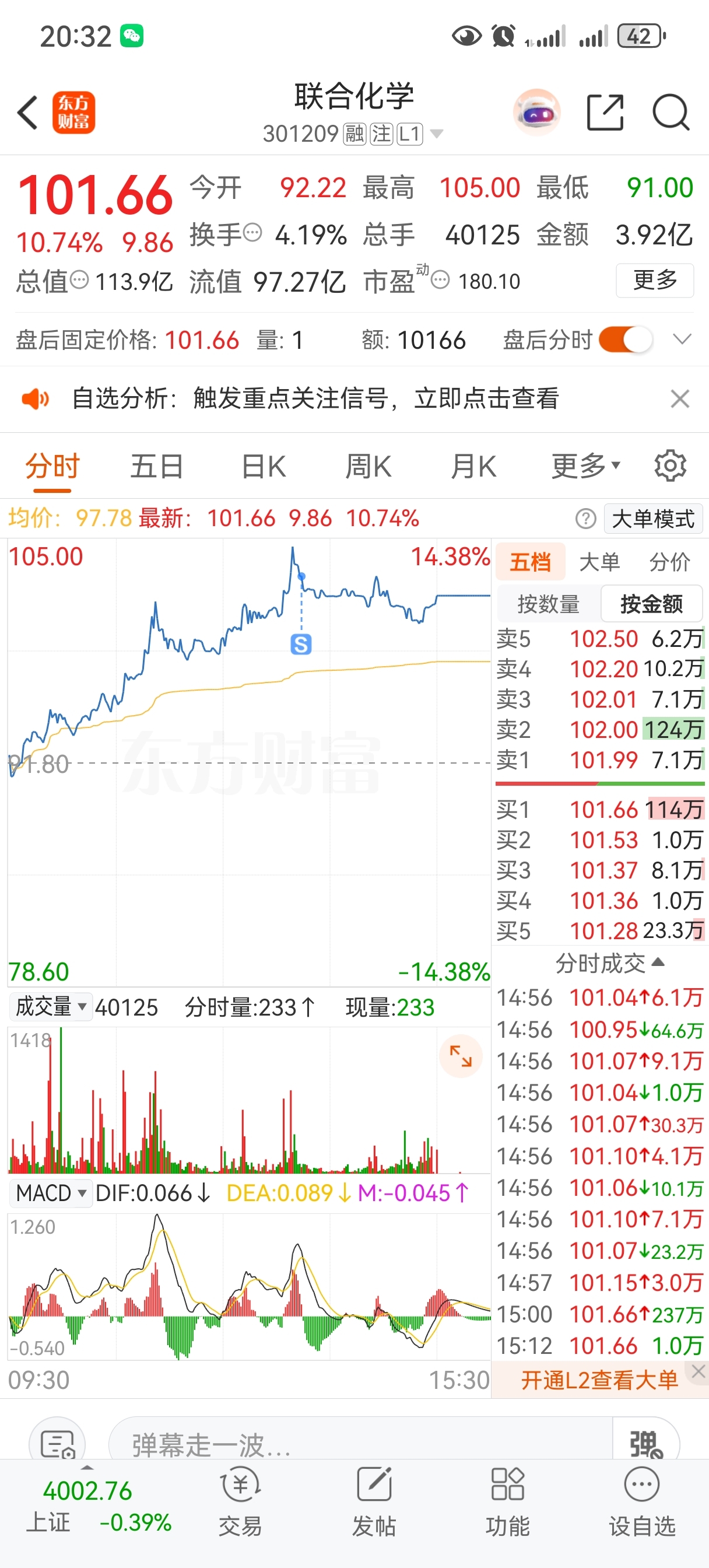 $联合化学(SZ301209)$ 明天低开多点我买回,希望涨停