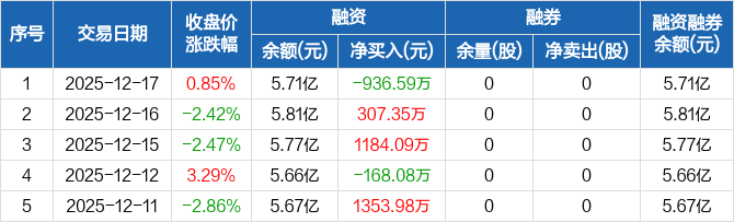 联合化学:融资净偿还936.59万元,融资余额5.71亿元(12-17)