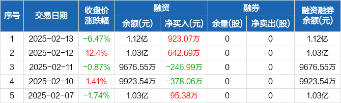 金杨股份:融资余额1.12亿元,创历史新高(02-13)