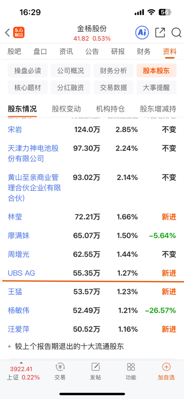 $金杨股份(SZ301210)$ 瑞士银行外资看好,国内基金却跑了!
