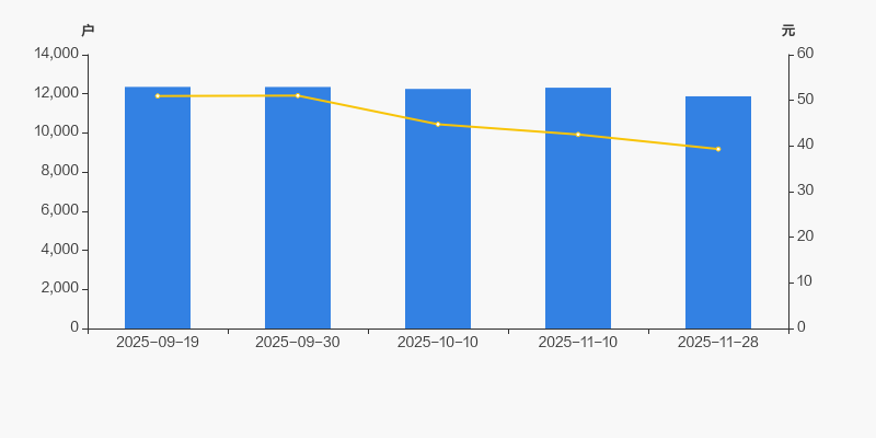截至2025年11月28日,公司最新总股本为1.15亿股,其中流通股本为4346.39万股。户均持有流通股数量由上期的3529股上升至3660股,户均流通市值14.47万元。