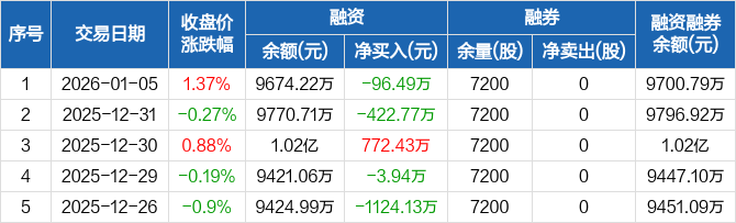 金杨精密:融资净偿还96.49万元,融资余额9674.22万元(01-05)