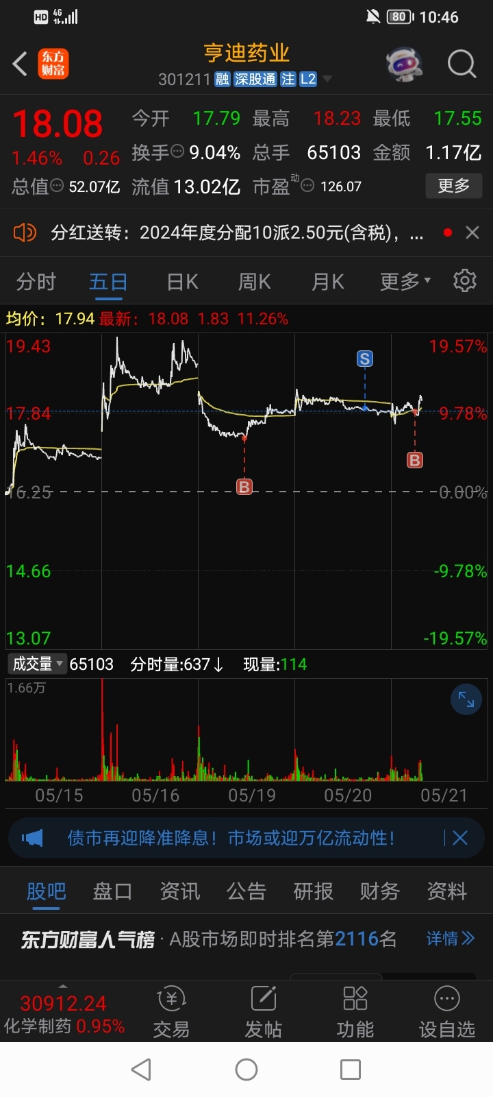 $亨迪药业(SZ301211)$ 买就涨,适合我