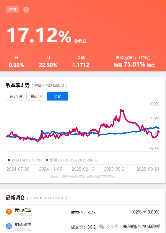 组合策略日收益::0.02%,总收益:17.12%