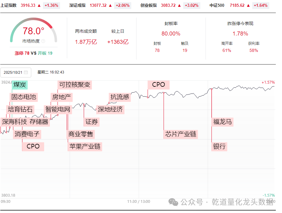 10月21日,继续乾道热点龙头策略:开单只满仓。