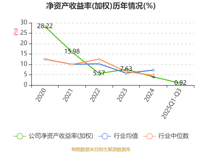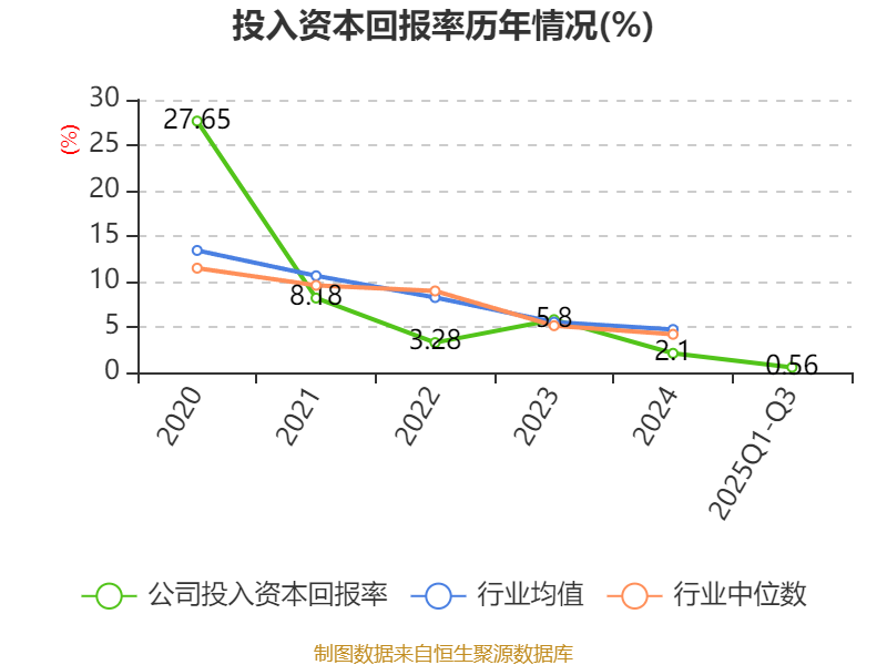 盈利能力方面, 2025年前三季度公司加权平均净资产收益率为0.92%,同比下降2.29个百分点。公司2025年前三季度投入资本回报率为0.56%,较上年同期下降0.97个百分点。