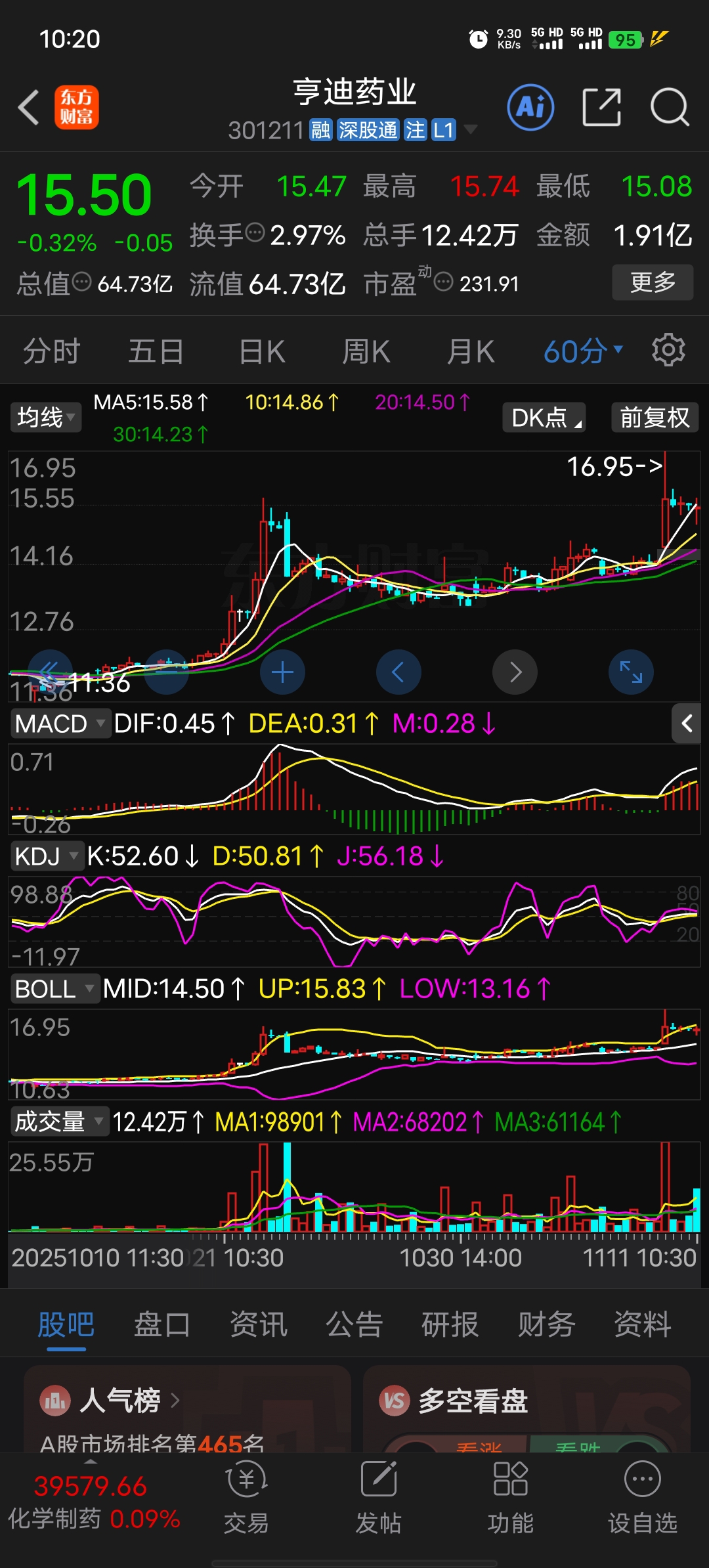 $亨迪药业(SZ301211)$ 他的走势非常完美,非常漂亮。
